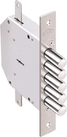 Замок врезной Гранит 1.06.01 предназначен для дверей усиленной конструкции. Соответствует 4 классу. Кодовый механизм сувальдного типа обеспечивает более 1,5 млн. комбинаций. 5 ригелей диаметром 18 мм, тяги. Цвет: никель.