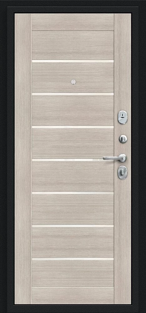 Надежная входная Дверь Браво Техно Букле черное/Cappuccino Veralinga премиум класса по цене 31 877 руб. Большая толщина стали защитит от проникновения в ваш дом, квартиру или коттедж. Используется очень качественная фурнитура: замки, цилиндры, ручки, защелки. Покрытие и отделка двери изготовлено под внимательным контролем производителя. Дверь имеет долгий срок службы и гарантию.
