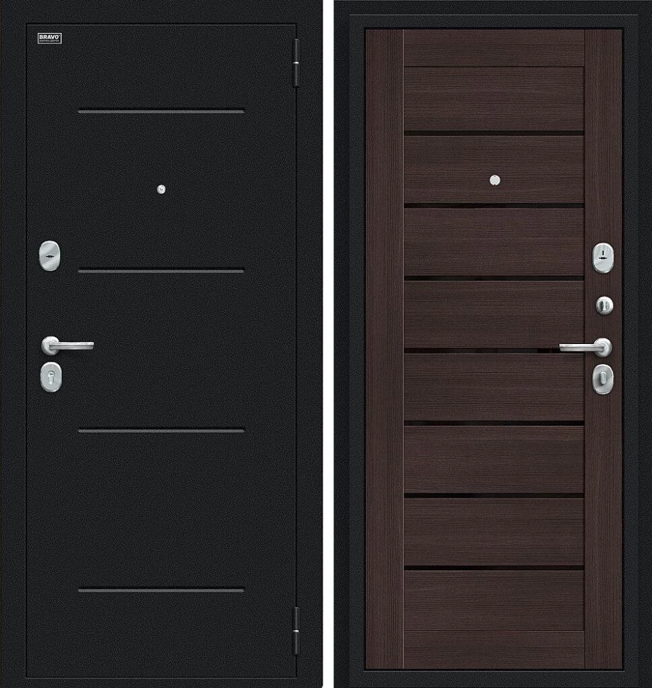 Надежная входная Дверь Браво Техно Букле черное/Wenge Veralinga премиум класса по цене 31 877 руб. Большая толщина стали защитит от проникновения в ваш дом, квартиру или коттедж. Используется очень качественная фурнитура: замки, цилиндры, ручки, защелки. Покрытие и отделка двери изготовлено под внимательным контролем производителя. Дверь имеет долгий срок службы и гарантию.