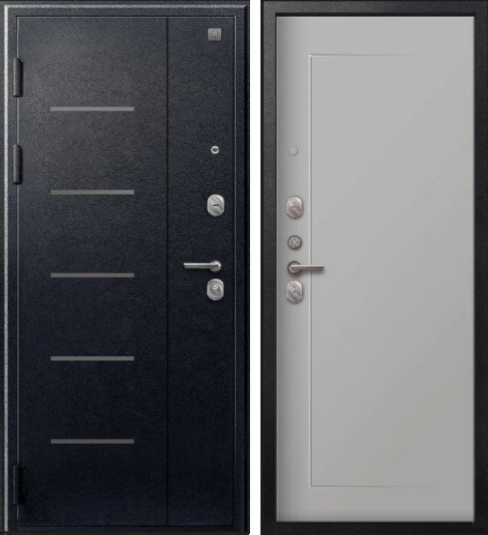 Надежная входная Дверь V-03 Черный муар - Кашемир сильвер премиум класса по цене 40 087 руб. Большая толщина стали защитит от проникновения в ваш дом, квартиру или коттедж. Используется очень качественная фурнитура: замки, цилиндры, ручки, защелки. Покрытие и отделка двери изготовлено под внимательным контролем производителя. Дверь имеет долгий срок службы и гарантию.